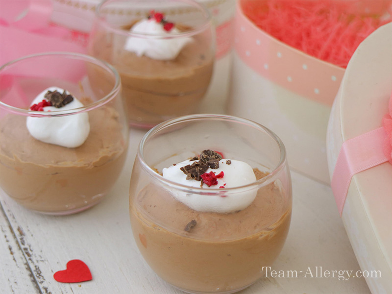 | 2 | 残りの豆乳ホイップ30gと、豆乳、砕いたアレルゲンフリーチョコレートを入れて、 湯煎にかけて溶かして冷ます。 |