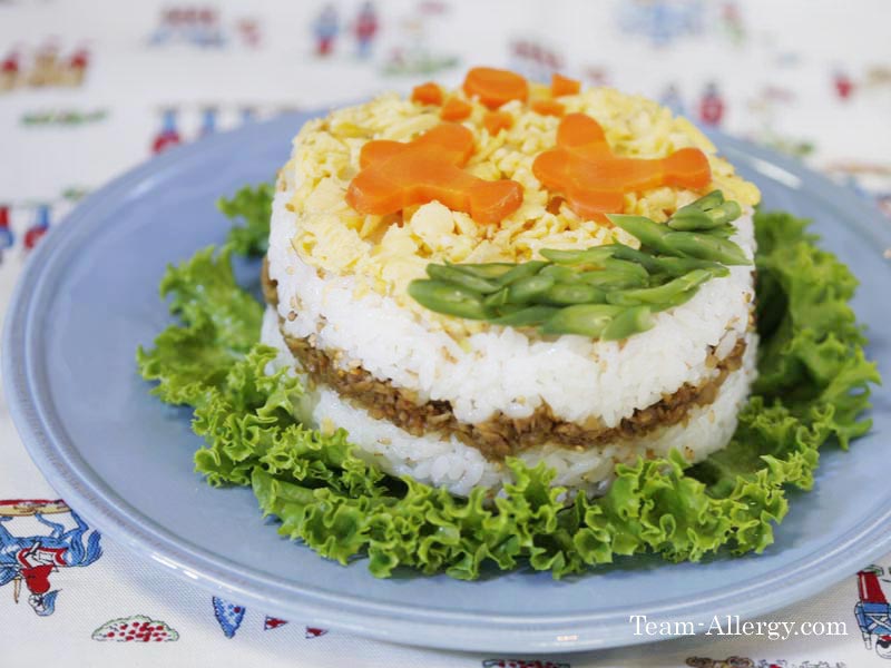 | 7 | ・上に、錦糸卵、ゆでたにんじんやいんげんを飾る。 | ![]() |