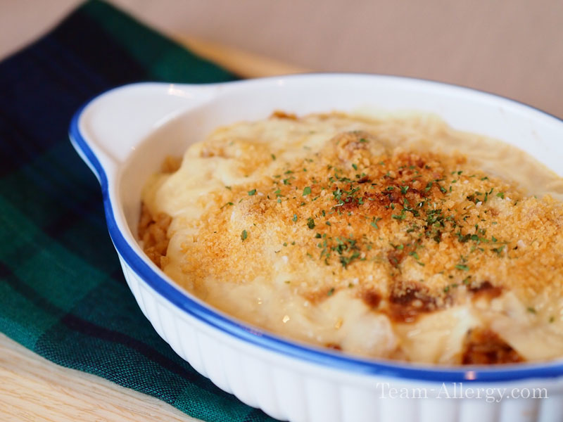 | 4 | グラタン皿にごはん、ホタテをのせ、カレーソースをかける。 豆乳クリームソースをかけて、粉々に砕いたあられをのせ、オーブントースターで10分程度焼く。 焼き上がったら、パセリを乗せる。 |
